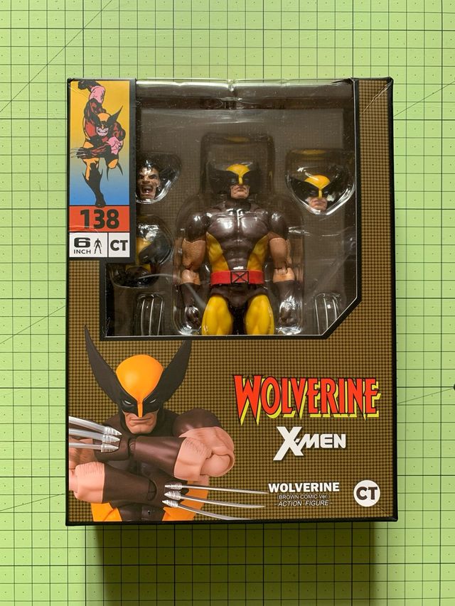 Figura de acción de Wolverine, versión cómic en marrón. - Detalle de la versión cómic. - Diseño clásico del personaje.