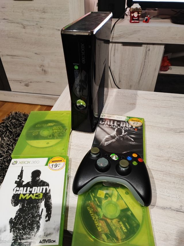 se vende consola xbox 360 slim 128 gb con los juegos que salen en las fotos y 1 mando inhalambrico,se vende en orense,no envio.