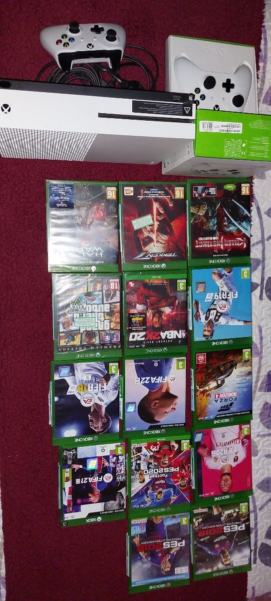 Detalles del productoxbox one s 1 tb con cable de alimentación y hdmi originales 2 mandos originales y 14 juegos 5 de ellos sin estrenar. consola y mandos en perfecto estado.