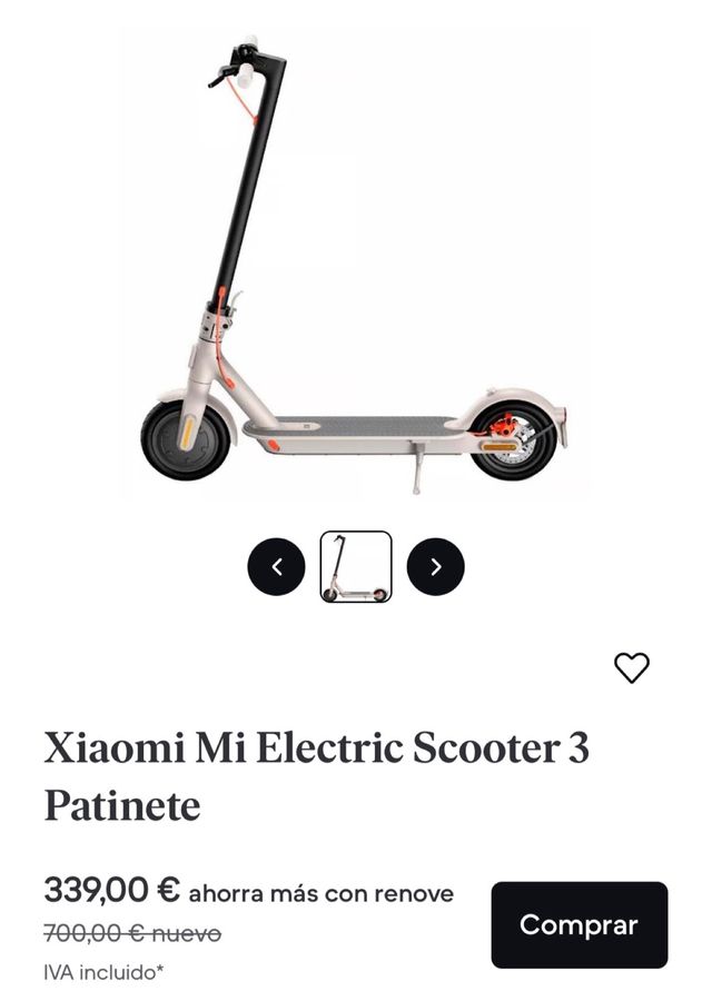 Detalles del productoPatinete eléctrico Xiaomi Mi Electric Scooter 3 en color blanco.