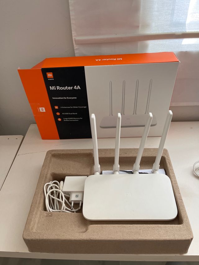 Detalles del productoRouter Xiaomi Mi Router 4A en color blanco. Incluye el router, el adaptador de corriente y el cable.