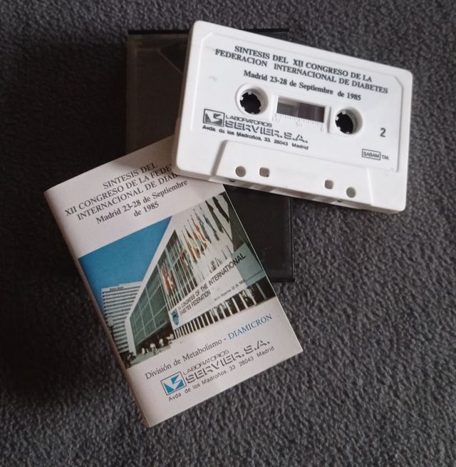 Detalles del productoCinta en formato CASSETE, creo que imposible de conseguir en la actualidad con la SINTESIS DEL XII CONGRESO DE LA FEDERACIÓN INTERNACIONAL DE DIABETES, realizado en Madrid desde el día 23 hasta el día 28 de septiembre de 1985. Un documento grabado único.
