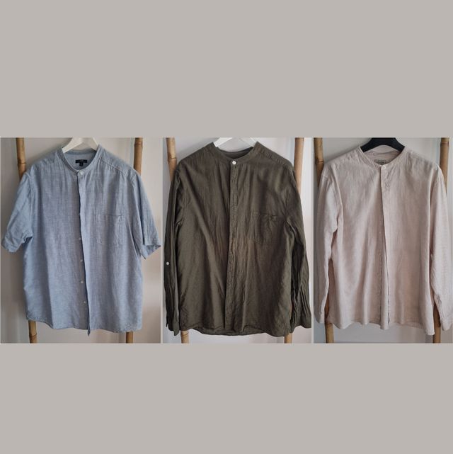 (XL) 3 CAMISAS LINO CUELLO MAO AZUL, VERDE Y BEIGE