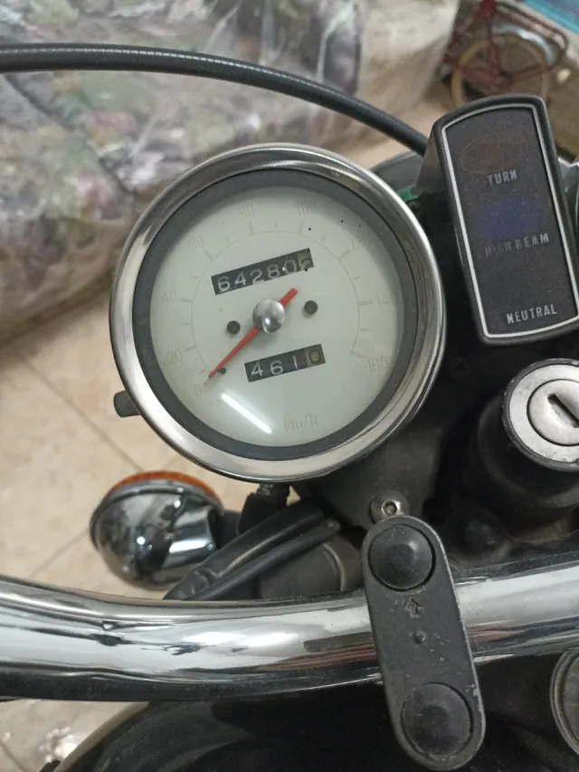 Moto Yamaha 250cc. - Velocímetro con indicador de km/h. - Odómetro: 64280 km. - Cuentakilómetros parcial: 4610 km. - Indicadores de luz (Turn, High Beam, Neutral).
