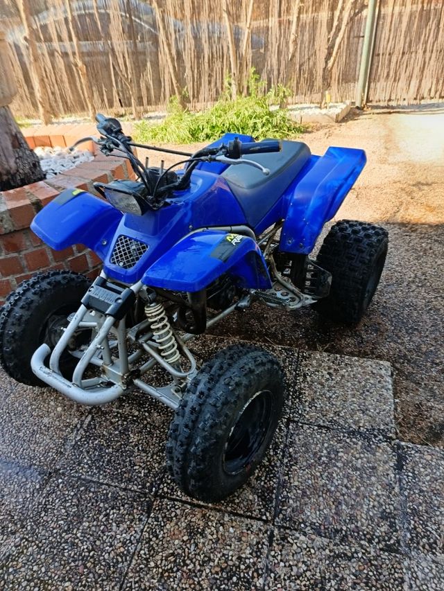 Detalles del productoYamaha blaster 200, sin papeles, funciona bien en general pero hay que hacerle cosas, por ejemplo el freno trasero esta roto, se quito los 4 intermitentes la luz de freno y la matricula. tiene las 4 ruedas practicamente nuevas, escape silenciador FMF y aceite cambiado hace unos 5 meses, lo vendo por que no tengo tiempo para usarlo.