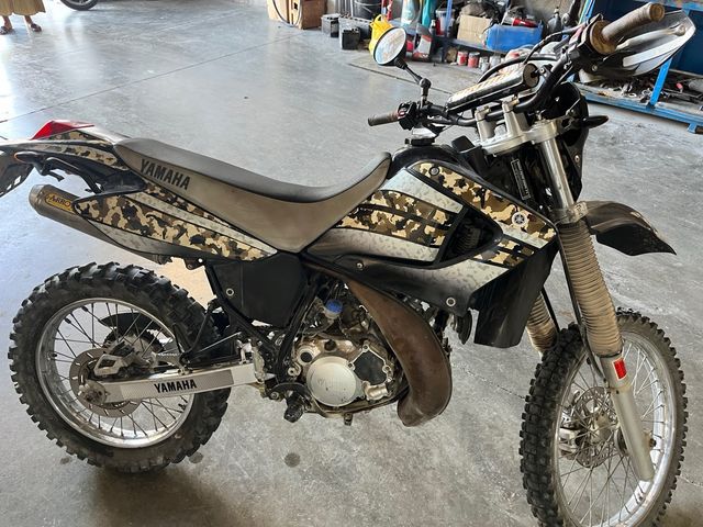 Detalles del productoMoto Yamaha DT 125 con un diseño de camuflaje único. Ideal para caminos y senderos.