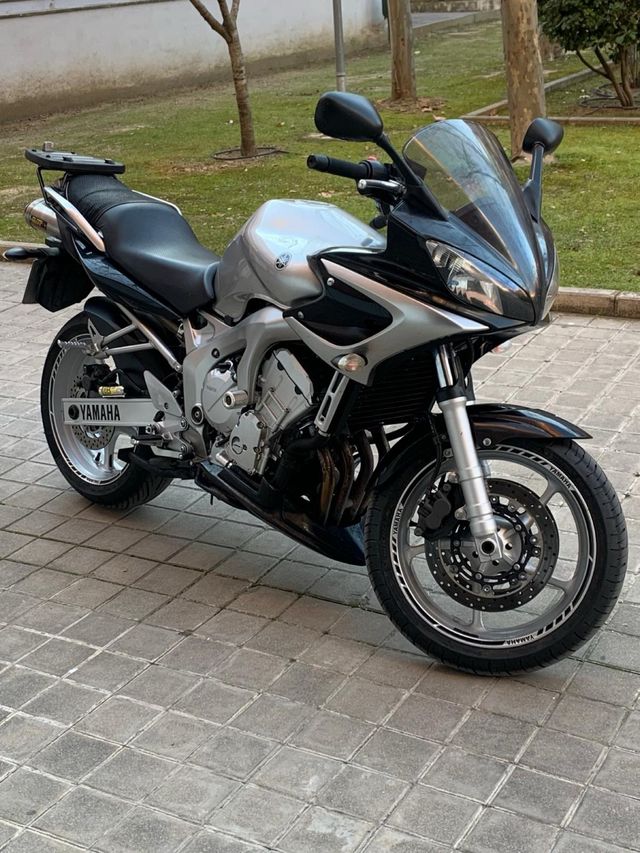 Detalles del productoMoto deportiva Yamaha FZ6 en colores negro y plata.