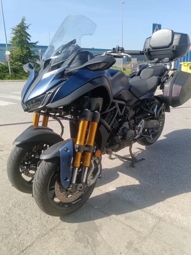 Detalles del productoYamaha Niken GT en color azul y negro, estilo touring.