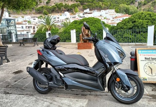 Detalles del productoMoto Yamaha Xmax 125 en color gris oscuro. Ideal para moverse por la ciudad con estilo y comodidad.