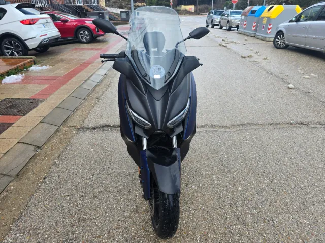 Detalles del productoScooter Yamaha XMAX 400 en llamativos colores negro y azul.