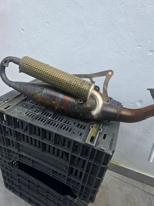El escape lo compre hace 1 año y lo he utilizado poco tiempo por necesidad de un escape mas grande y lleva guardado mucho tiempo tiene pequeños bollos que no afectan casi nada al rendimiento , se entrega con puro Kevlar o sin puro y se bajaría el precio , o también se podria vender el puro solo