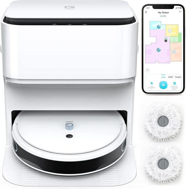 Detalles del productoyeedi mop Station, Robot fregasuelo y aspiradora 2 en 1 con estación de Limpieza automática, Aspira y Lava, succión de 2500 Pa, mapeo Inteligente, detección de alfombras, Mapa editable Medidas del producto