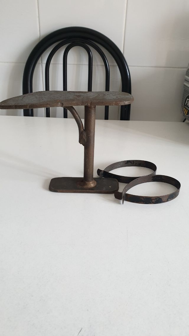 de hierro,muy antiguo de más de 60años,con regalo lo de poner en los pantalones cuando vas en bici.tambien muy antiguo