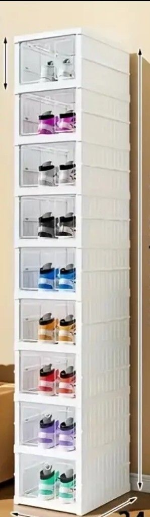 Detalles del productoZapatero blanco plegable de 9 alturas. 156 alto x 34.5 fondo x 26.4 ancho Medidas del producto