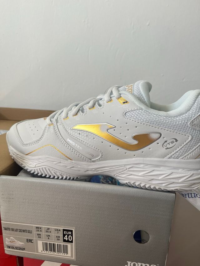 Zapatilla de pádel para mujer Joma Master 1000 en color blanco y dorado. - Talla EUR 40. - Modelo: TMASTER 1000 LADY 2202. - Color: Blanco/Dorado.