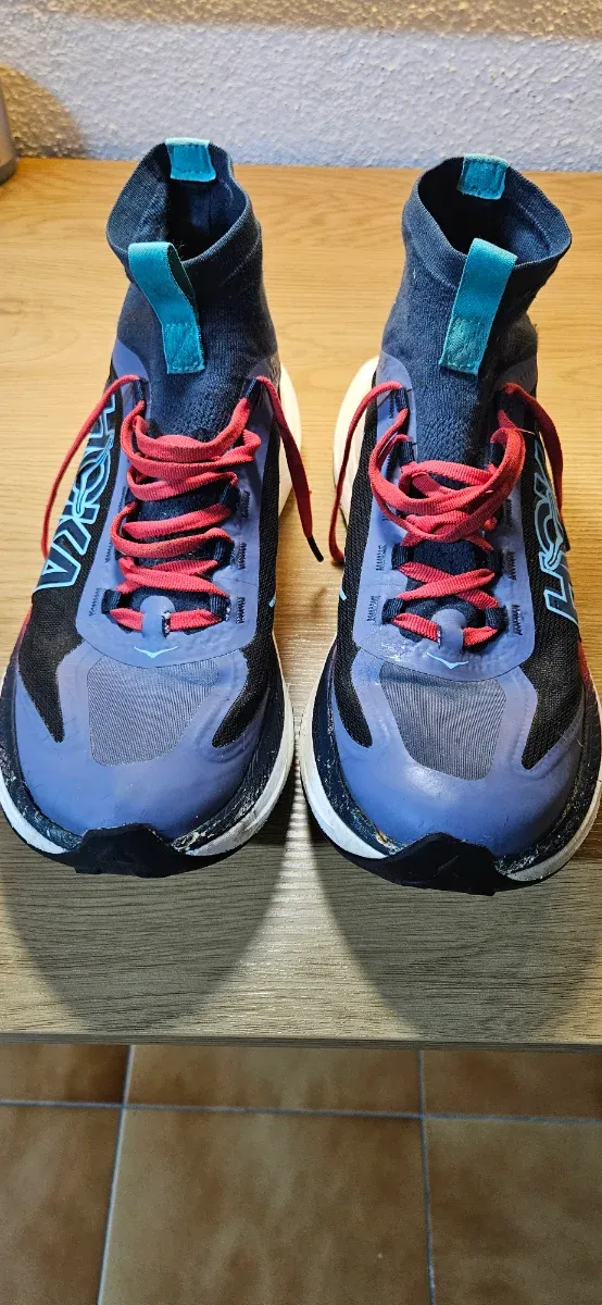 Buen estado · 42 · Hoka Tekton X3 · Azul y Rojo
