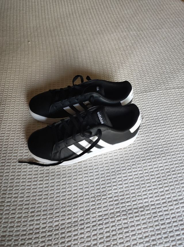 Zapatillas Adidas para niño, en perfecto estado. - Color negro con rayas blancas. - Talla de niño 36 - Ideales para uso diario.