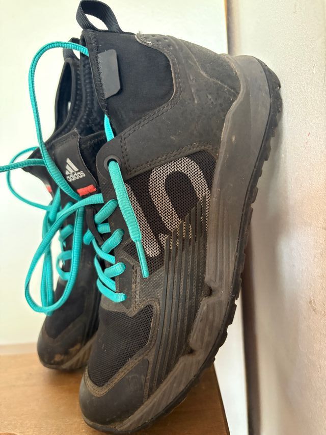 Detalles del productoZapatillas Adidas Trailcross five ten. Estan usadas en 10 salidas como mucho, ya que prefiero zapatilla corta. El unico desperfecto es la etiqueta levantada que se puede coser. Talla 37 2/3