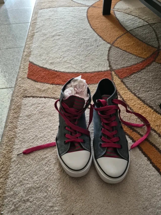 Zapatillas altas grises y rosas