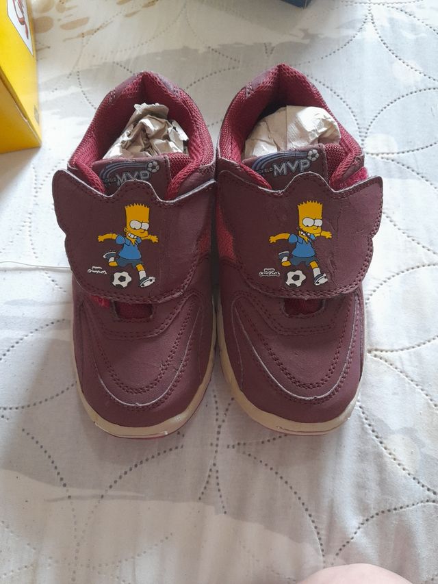 Zapatillas deportivas para niño,. Ideales para jugar. - Modelo con Bart Simpsons jugando al fútbol. - Cierre de velcro. - Talla 29 para niño.