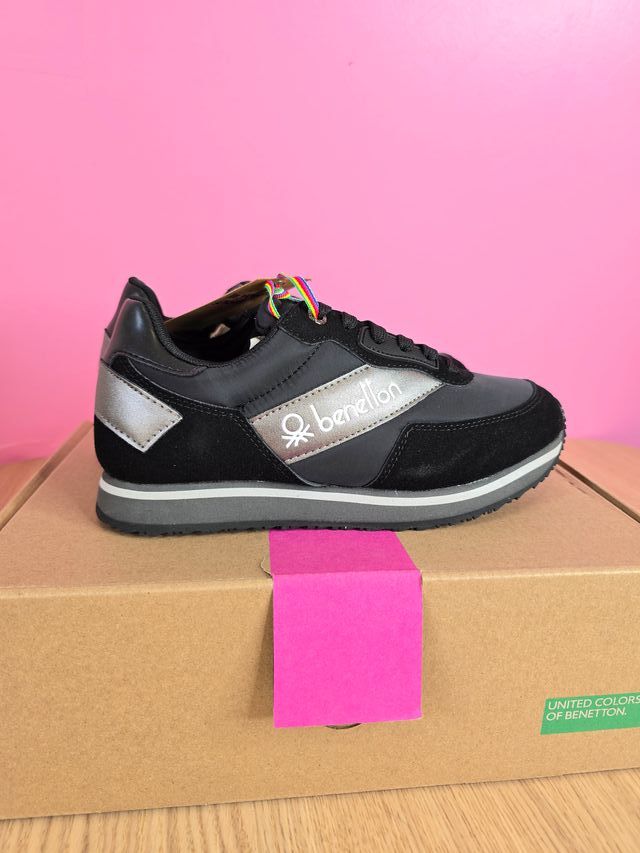 Zapatillas Benetton Talla 37 Negras y Plateadas