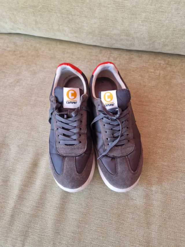 Zapatillas Camper grises con detalles rojos