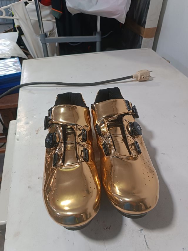 Zapatillas ciclismo doradas muy exclusivas por su color dorado talla 44-45, doble cierre de boa ,están sin usar.