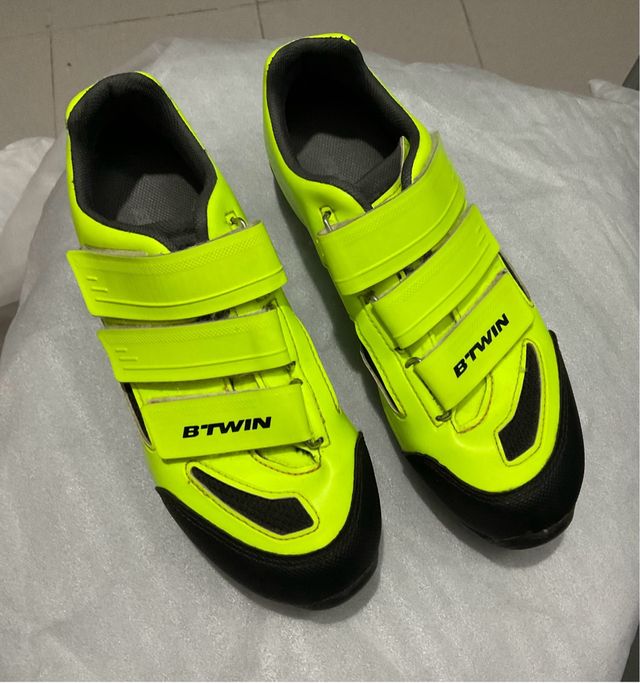 Detalles del productoZapatillas de ciclismo BTWIN, talla 39, color amarillo. En perfecto estado. - Ideales para rutas en bici. - Diseño llamativo y vibrante. - Cierre de velcro, hay una foto de unos roces en la tela pero nada sin importancia.