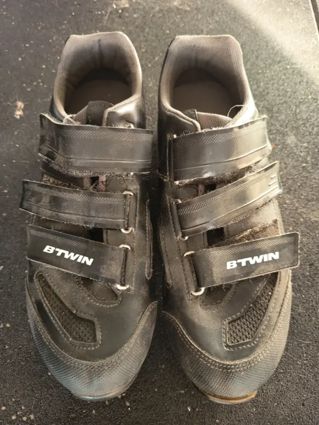 Zapatillas de ciclismo Btwin en color negro. - Cierre con tres velcros. - Diseño deportivo. - Material exterior sintético.