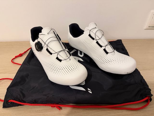 Detalles del productoZapatillas de ciclismo de la marca Ekoi en color blanco. Cierre BOA para un ajuste perfecto. Pequeñas marcas de uso que se aprecian en las fotos pero no tienen prácticamente uso. Calzo un 42 42,5 y me quedan perfectas.