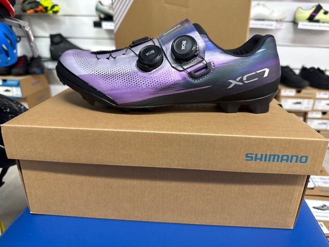 Detalles del productoZapatillas de ciclismo Shimano XC7 con un diseño moderno y llamativo.