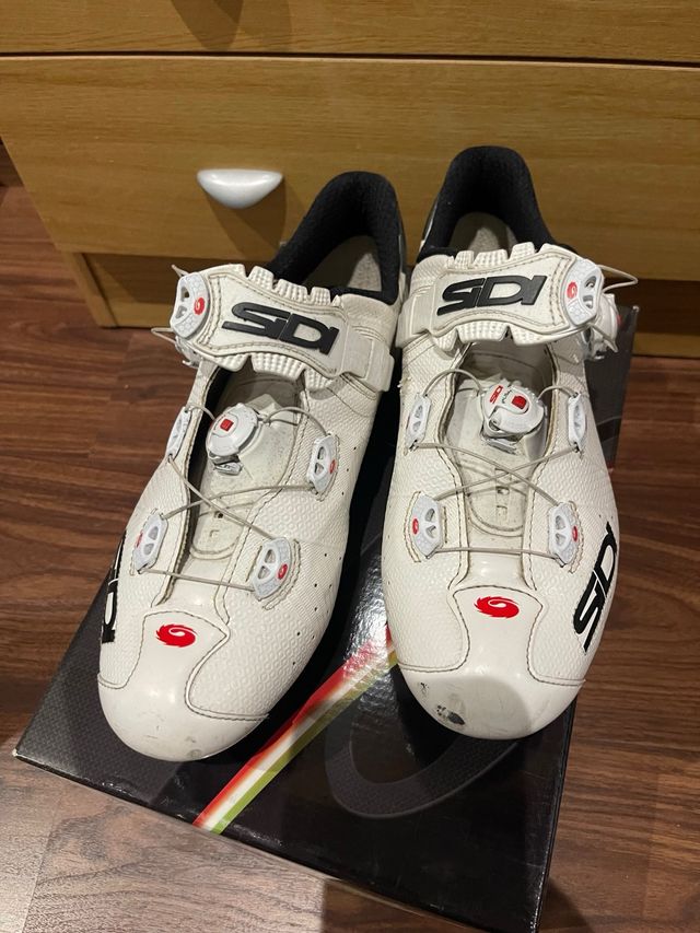Zapatillas de ciclismo de la marca Sidi en color blanco. - Cierre con dial y velcro. - Diseño deportivo. - Suela rígida. TALLA 42