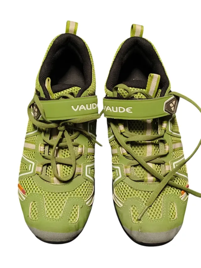 Detalles del productoZapatillas de ciclismo VAUDE Yara TR en muy buen estado. Talla 43, color Green Pepper. Modelo para bike-trekking y uso urbano: cómodas para pedalear y también para caminar. Empeine de malla transpirable, cierre con cordones + velcro, puntera reforzada y suela con vástago de nylon, compatibles con calas. Desgaste normal de uso, limpias y listas para usar. Precio: 32€. Entrego en mano o envío por Wallapop.