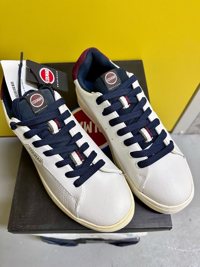 Zapatillas Colmar Piel Blancas y Azul Marino