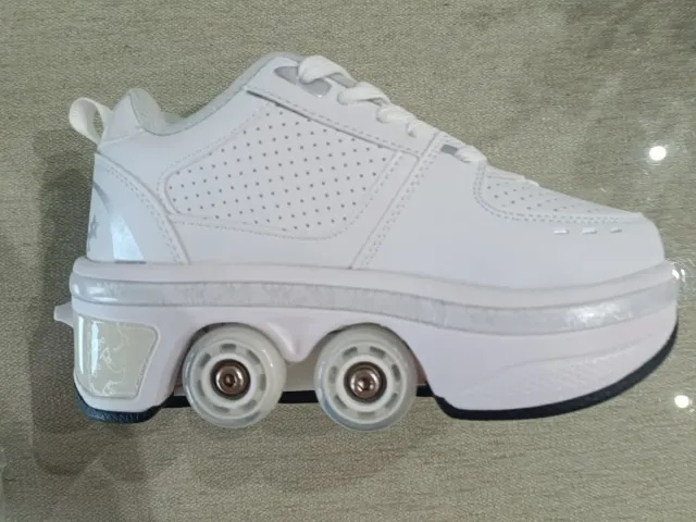 Zapatillas deportivas blancas con ruedas, ideales para niñas. Con ruedas en la suela que se extraen para deslizarse. NUEVAS SIN ESTRENAR, NADA DE USO