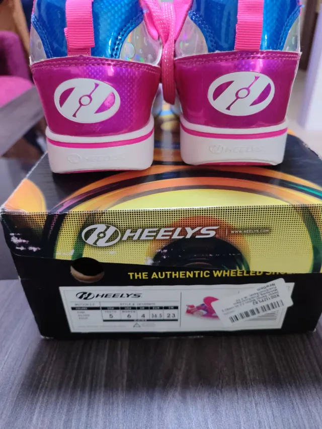 Detalles del productoZapatillas con ruedas marca Heelys, ideales para deslizarse.