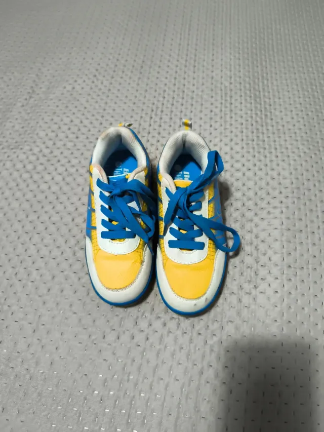 Zapatillas deportivas para niños con ruedas. 🔸 Talla 31. 🔸 Cierre con cordones. 🔸 Diseño en color azul y amarillo.