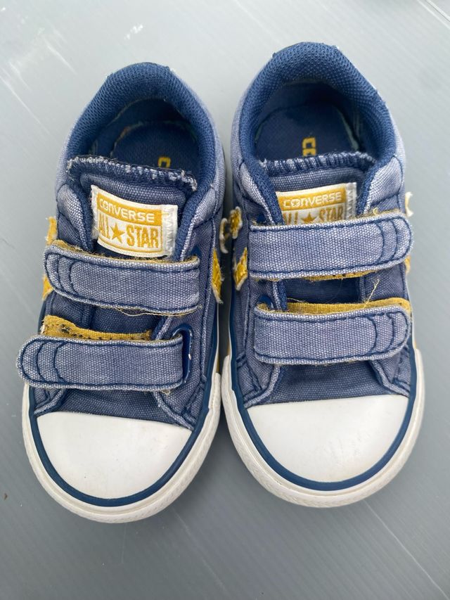 Zapatillas infantiles de la marca Converse en color azul marino con detalles en amarillo. - Cierre de velcro. - Logo de Converse All Star en la lengüeta. - Puntera reforzada.