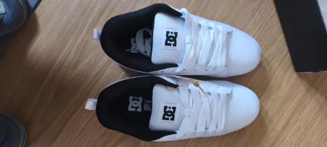- Logo de DC Shoes en la lengüeta y el lateral.