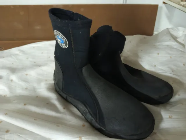 Zapatillas de agua de neopreno, ideales para deportes acuáticos. - Número 41 - Material: Neopreno. - Cierre: Cremallera. - Suela: Goma. - Logo: Patagonia Diving.