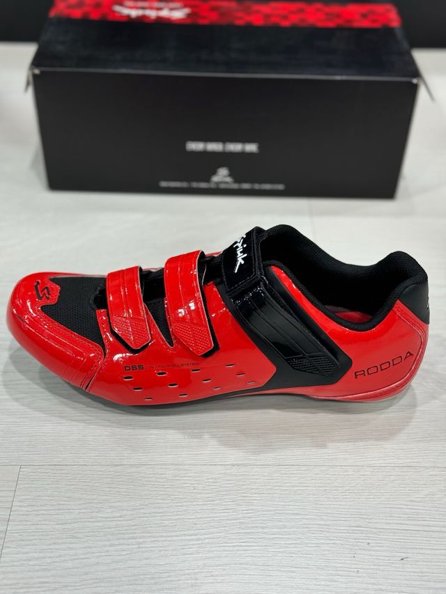 Detalles del productoZapatillas de ciclismo de carretera Spiuk Rodda Road en color rojo, talla 46. Cuentan con cierre de velcro para un ajuste cómodo y seguro. Su suela de composite ofrece una óptima transmisión de potencia en cada pedalada. Fabricadas con materiales ligeros y transpirables, ideales para entrenamientos y largas rutas. ¡Nuevas y listas para estrenar! Medidas del producto