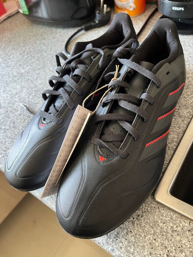 Zapatillas de fútbol Adidas en color negro con detalles en rojo. Nuevas a estrenar , me vienen pequeñas , talla 41