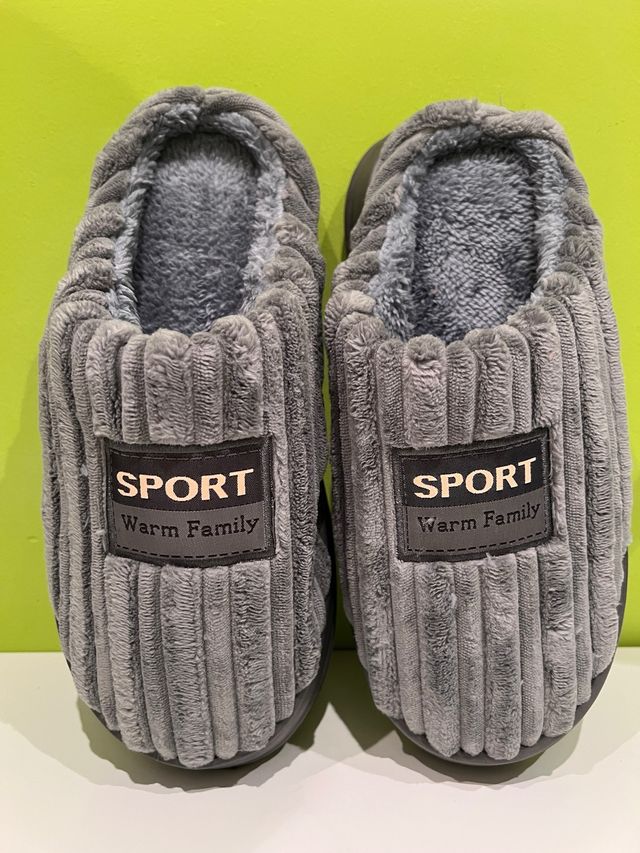 Comodidad y estilo para tus pies con estas zapatillas. - Diseño de canalé gris. - Etiqueta con SPORT y Warm Family en contraste. - Interior suave y cálido.