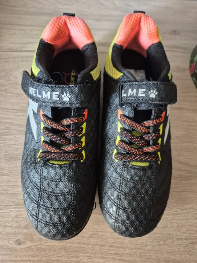 Zapatillas de fútbol Kelme en talla 34. Cierre de velcro y con multitaco. Se han usado muy poco como se ve en las suelas del multitaco.