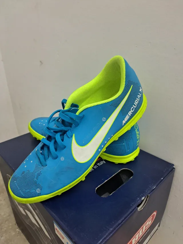 Detalles del productoZapatillas de fútbol Nike MercurialX en color azul y verde lima.