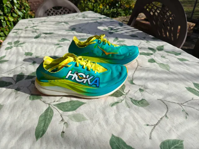 Como nuevo · 46 · Hoka · Verde azulado y Amarillo
