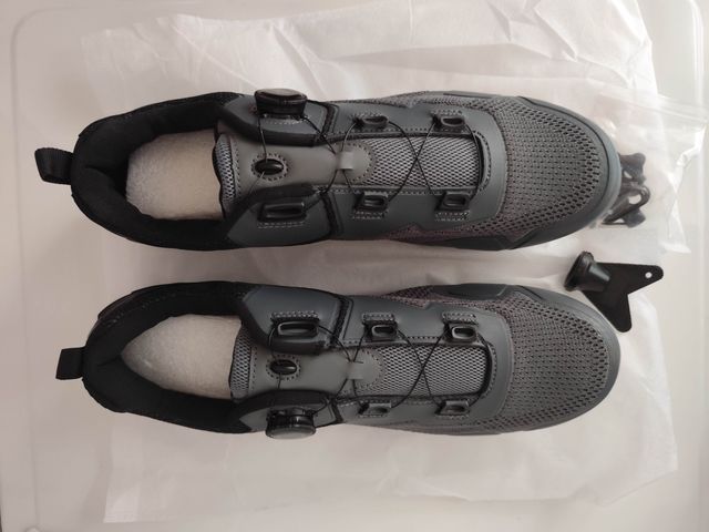 Zapatillas de ciclismo de montaña, color gris. Ideales para tus rutas.