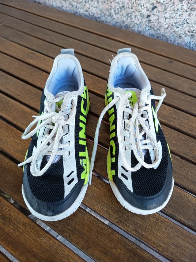 Detalles del productoZapatillas Munich Hooper para niño, talla 36. Son de color negro, blanco y verde lima. Están en buen estado, aunque presentan señales normales de uso.