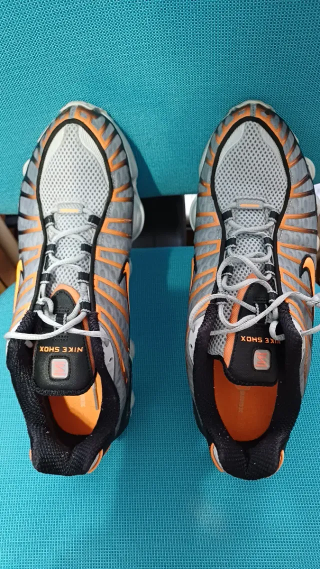 Zapatillas Nike Shox grises y naranjas