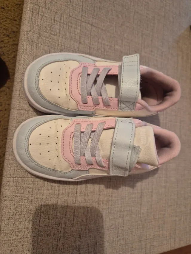 Como nuevoDetalles del productoZapatillas de niña de la marca Puma en tonos rosa y blanco. Cuentan con cierre de velcro para mayor comodidad.